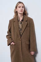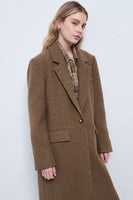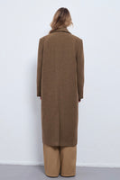 This long, thick wool coat features a single-breasted design and a classic notched lapel, paired with structured shoulders for a refined, vintage-inspired silhouette. Crafted from premium, heavy-weight wool, it offers exceptional warmth and comfort throughout the fall and winter seasons. Perfect for both everyday wear and formal occasions, this coat exudes timeless elegance and effortless sophistication.