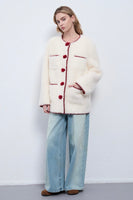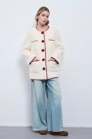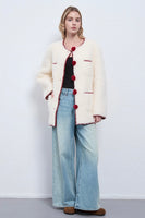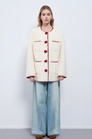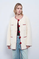 Inspired by classic Chanel elegance, this mid-length white coat embodies timeless sophistication with a modern twist. Crafted from a textured fabric that highlights its refined structure, it features a clean round neckline and delicate pom-pom accents adorning the buttons — adding a playful yet graceful charm. The minimalist silhouette flatters the figure while maintaining a polished, feminine allure, making it a perfect statement piece for both formal and everyday winter ensembles.